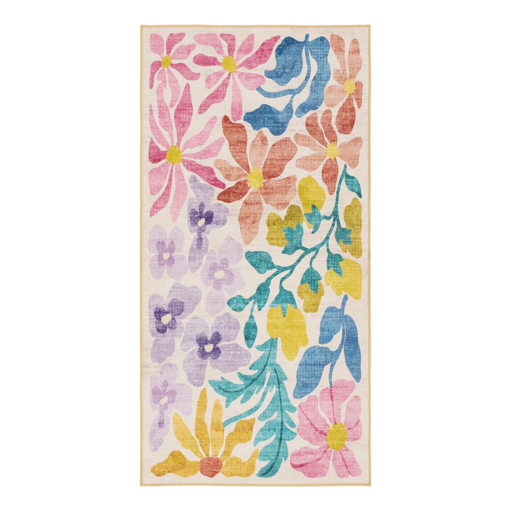 Tapete de poliéster con diseño estampado. Cuenta con reverso antideslizante. Producto lavable y apto para lavadora convencional.