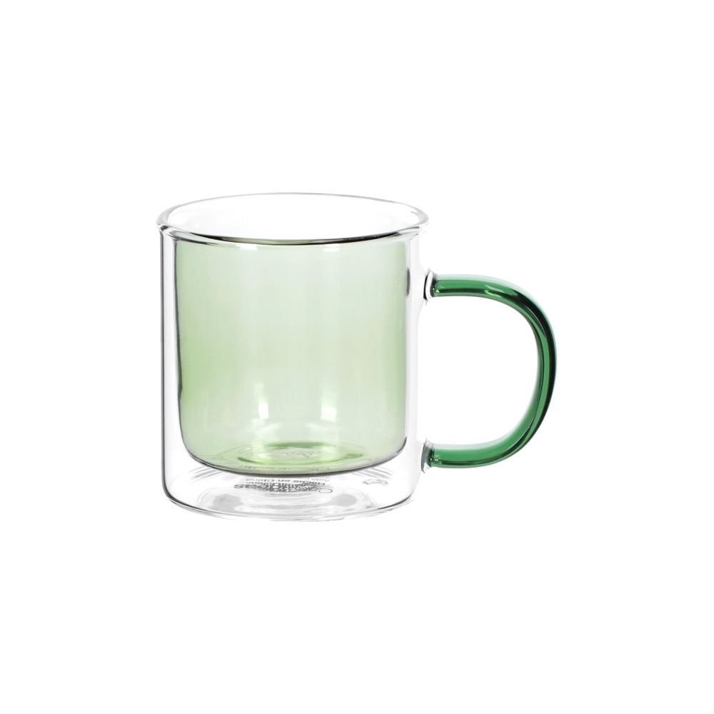 Taza de vidrio borosilicato con doble muro y color. Tiene una capacidad de 120 ml. No apto para lavavajillas. Apto para microondas.