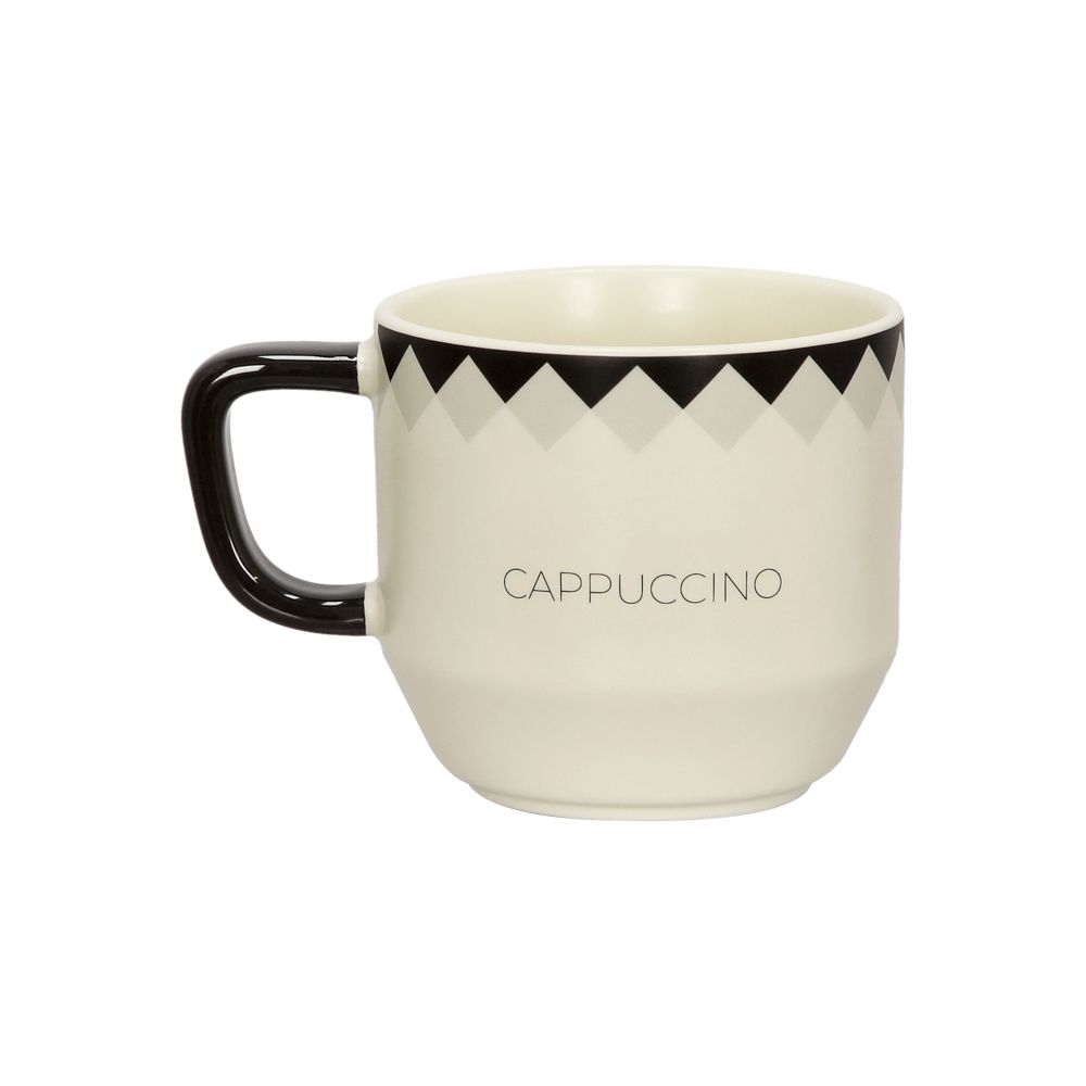 Taza de porcelana para tomar capuccino. Tiene una capacidad de 380 ml. Apto para lavavajillas. Apto para microondas. Tiene un tamaño de 12.7x9.4x8.7 cm.