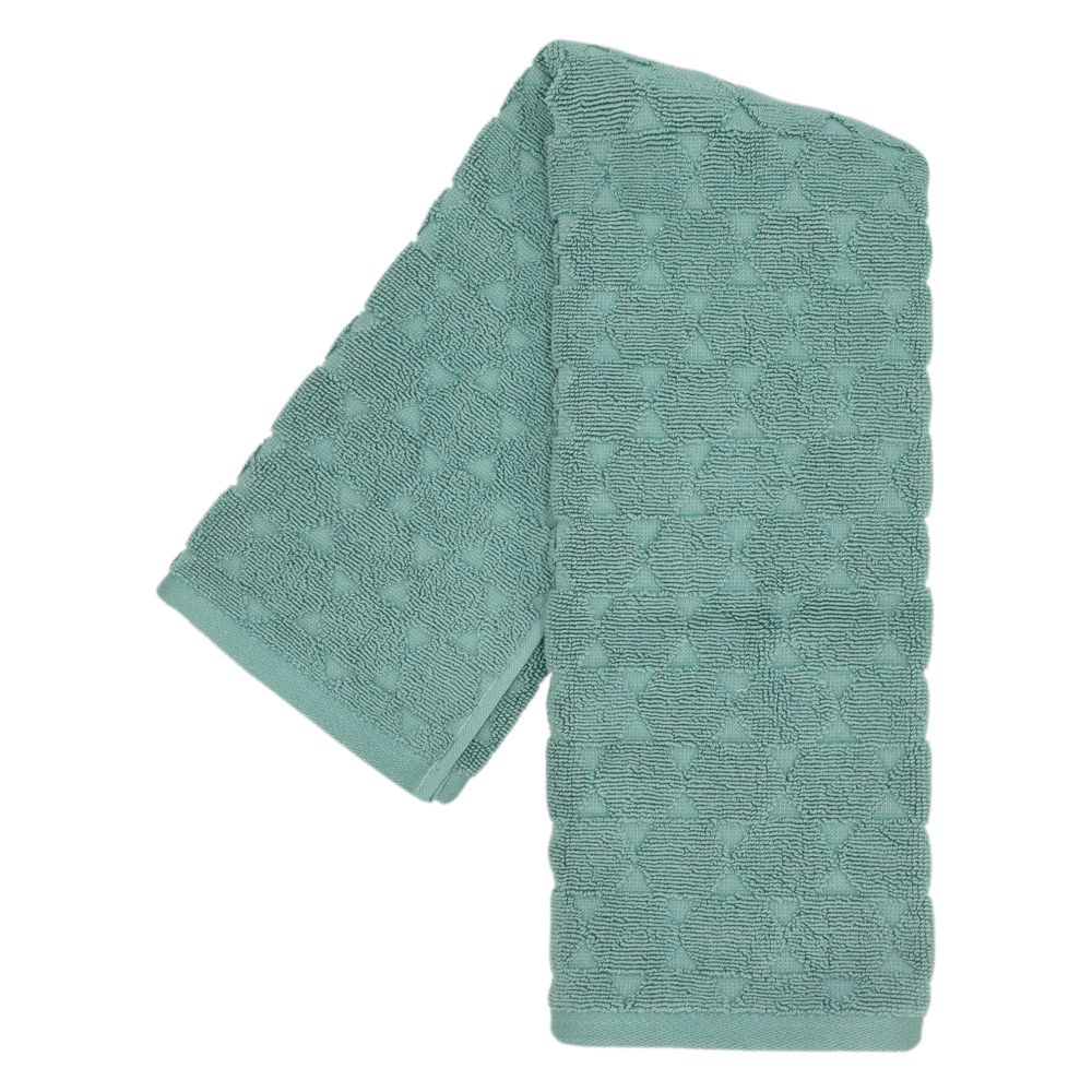 Toalla de mano de algodón con diseño dobby y jacquard. Tiene un tamaño de 40x70 cm.