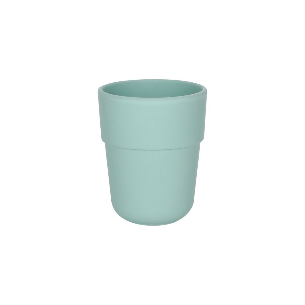 Vaso de fibra de bambú. Apto para contacto con alimentos. Tiene una capacidad de 300 ml y un tamaño de 7.8x9.8 cm. Producto libre de BPA.