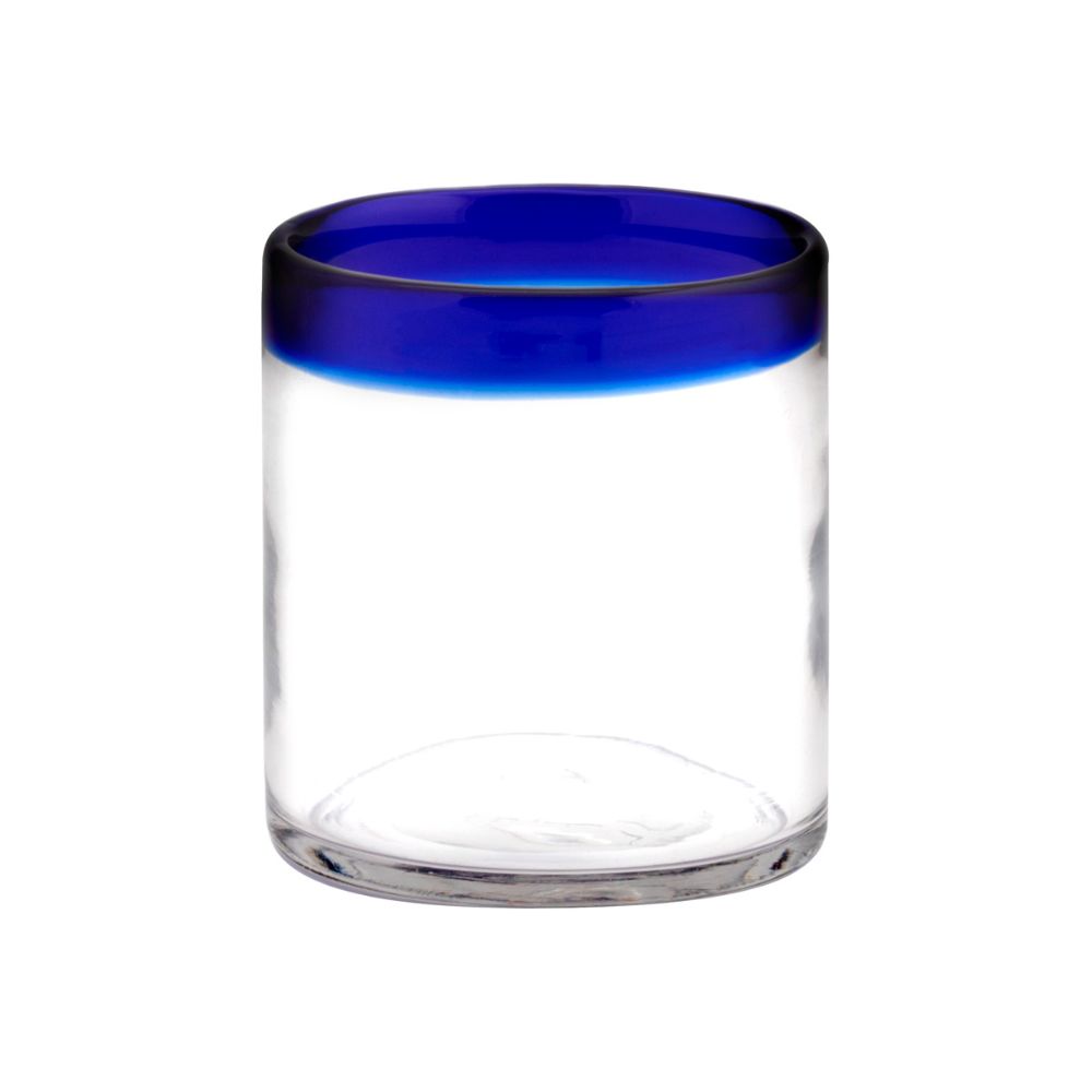 vaso de vidrio grueso con borde de color. Vaso de vidrio grueso con borde de color.