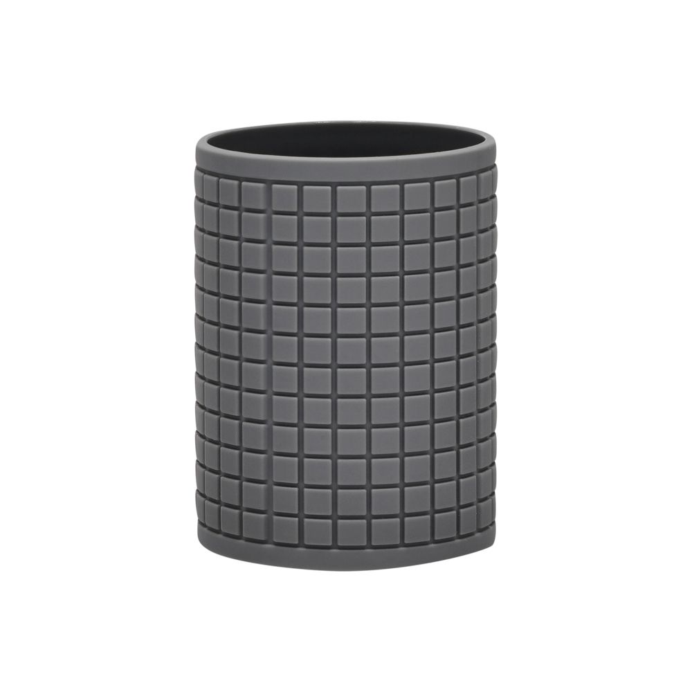Vaso para baño de plástico. Tiene un tamaño de 7.7x13 cm.