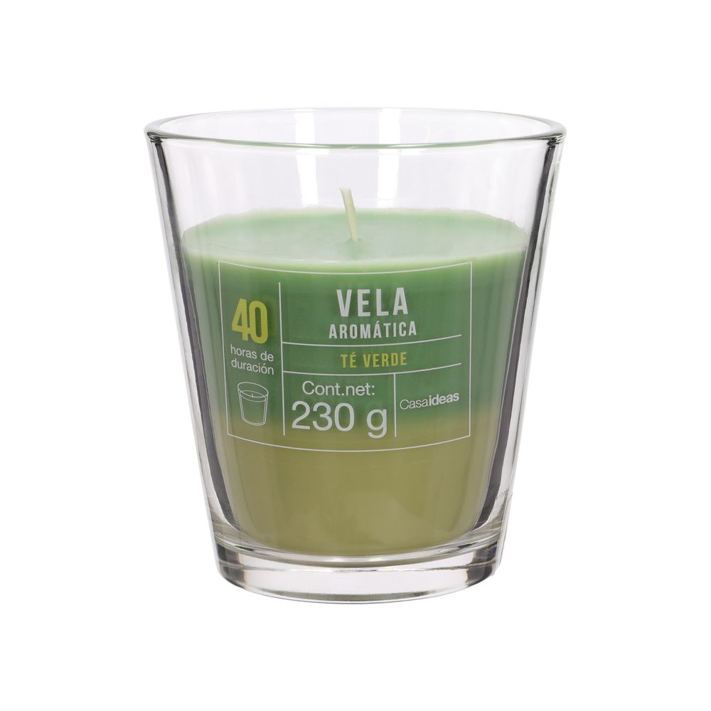 Vela con contenedor de vidrio aroma té verde 9x10 cm - Casaideas