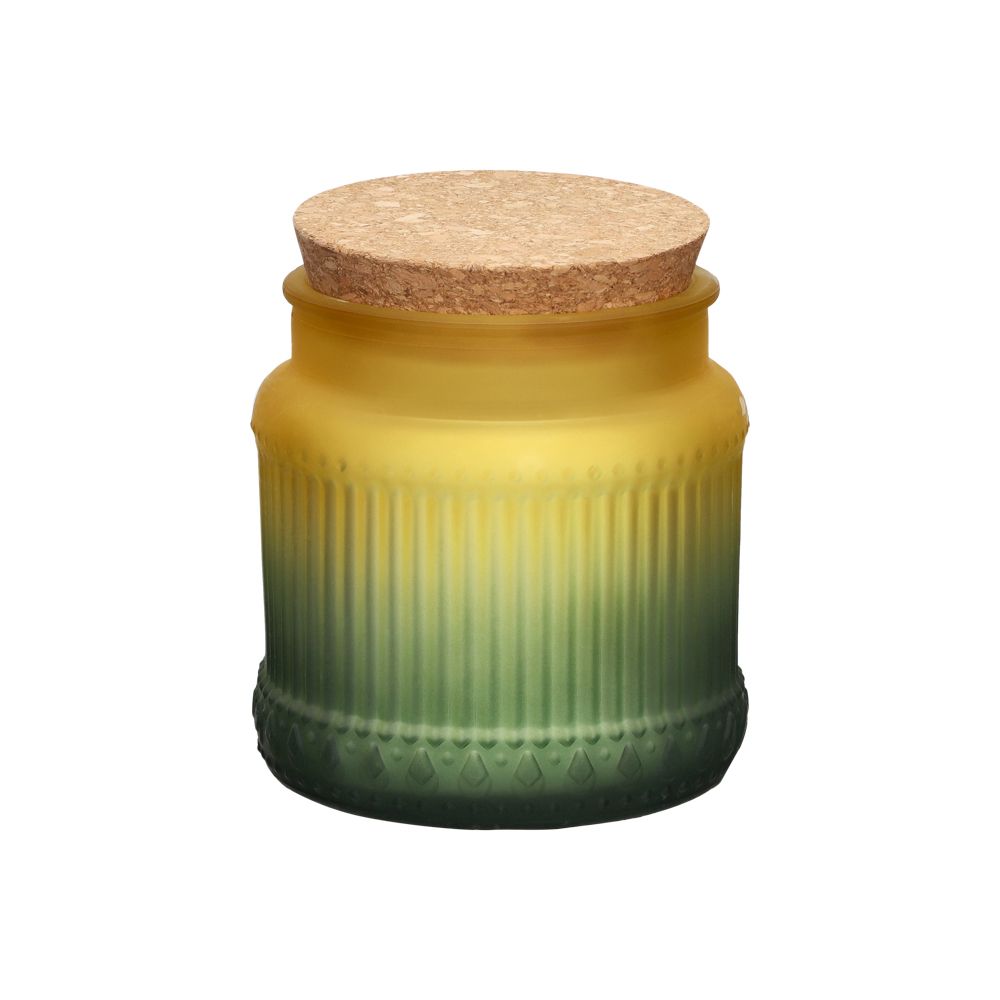 Vela de vidrio con color degradado y aroma a té verde. Se puede quemar por 55 horas aprox