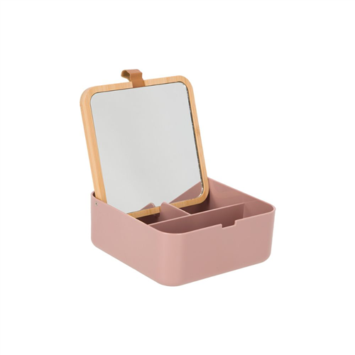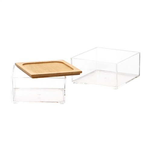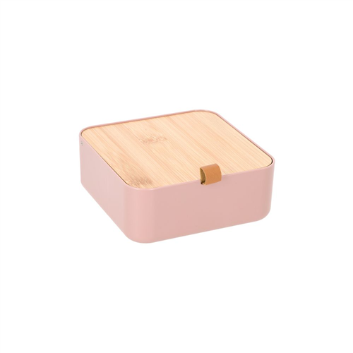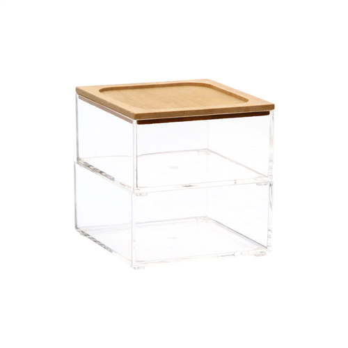 Organizador de joyas de plástico y bambú 14x14x5.5 cm